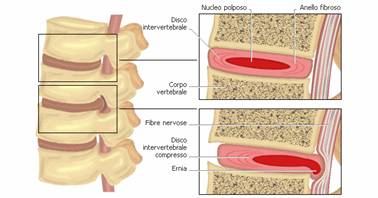 Altra patologia relativamente comune della colonna vertebrale è l'ernia del disco che si verifica per