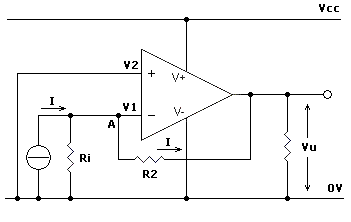 I = Vi/R1 = Vu/R2 |